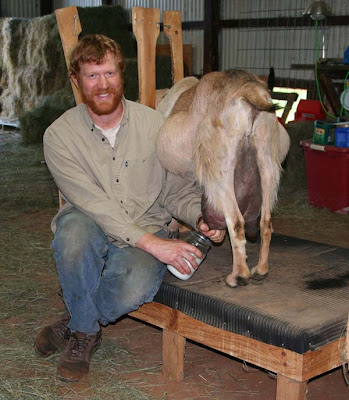 In Barb's absence, the remaining girls were ably attended to by guest milkers -- friends Rick