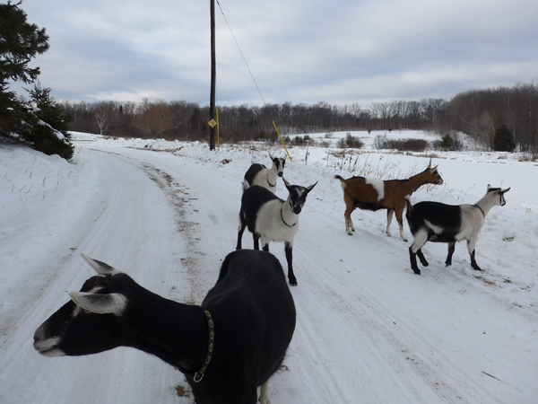 During the cold snap the goats jockeyed to see who would get to bed down in the cozy hay feeders --