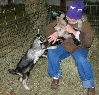 Ixios, who will soon be too big for his new goat mom to lift